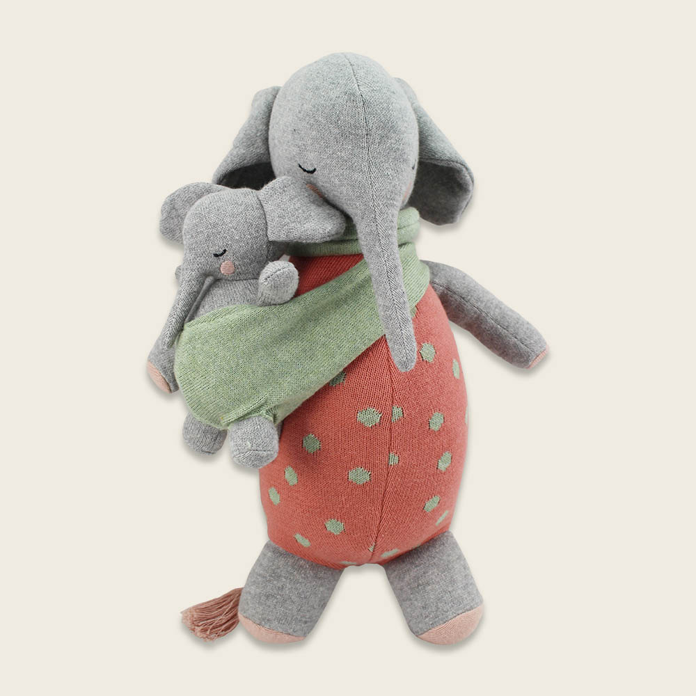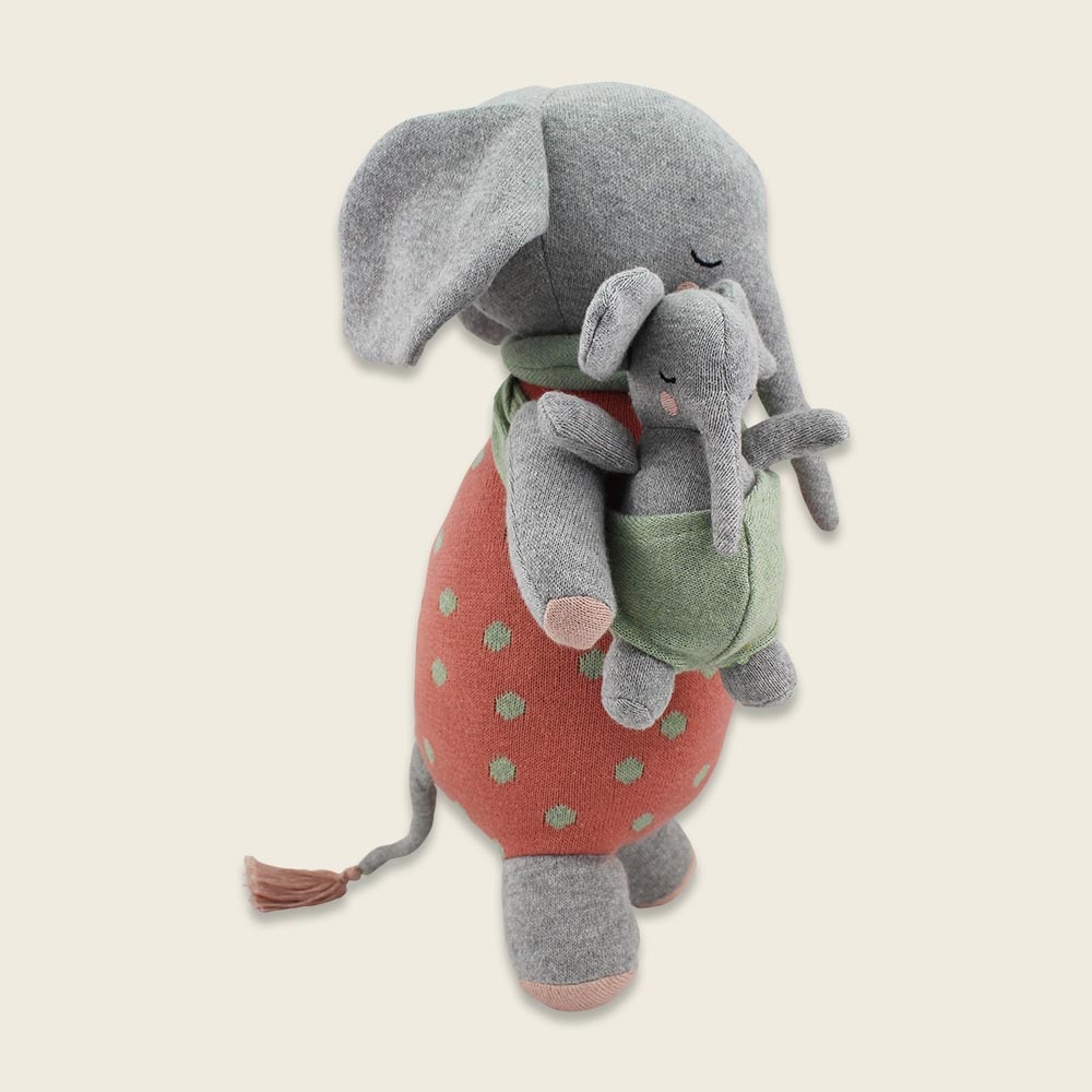 Wie entzückend ist denn dieses Elefantengespann aus weichem Strick? Es garantiert viele Spiel- und Kuschelstunden und ist unter anderem ein perfektes Geschenk, wenn ein Geschwisterchen erwartet wird. Abmessung: ca. 38 cm, Material: Strickstoff aus 100% Bio-Baumwolle, Füllung: 100% Polyester, Farbe: mehrfarbig, Pflege: Handwäsche empfohlen, Entspricht den Anforderungen nach EN71