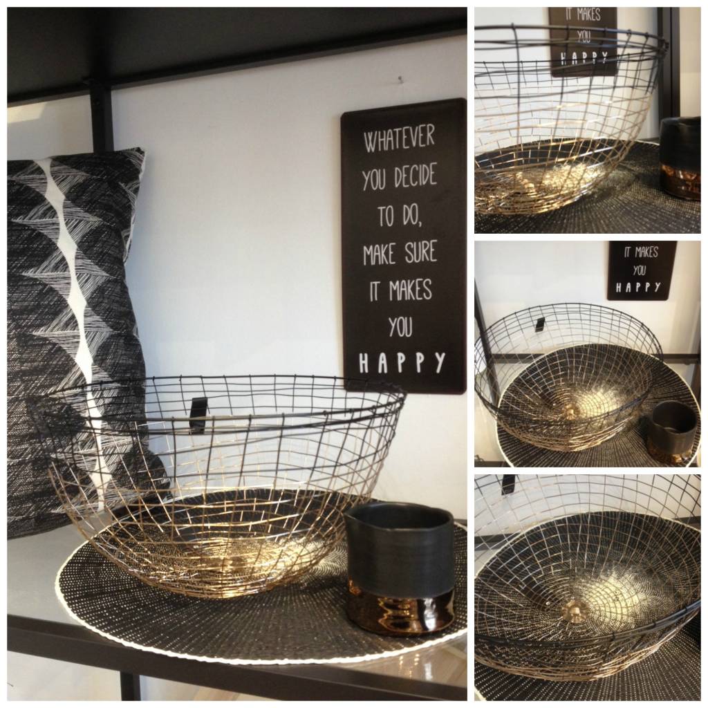Sehr edler Korb aus Drahtgeflecht von House Doctor. Das obere Drittel ist schwarz lackiert, das ist ein hübscher Kontrast und vervollkommnet den perfekten Look. Der untere Teil scheinrt je nach Lichteinfall mehr ins Silber oder Gold. Abmessung: ca. 30 cm Durchmesser oben, ca. 16 cm hoch. Material Draht.